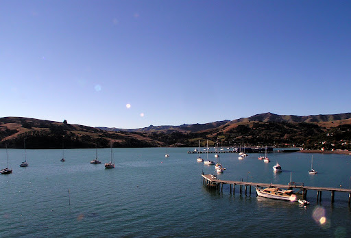 旅遊巴士從基督城開往AKAROA的路上都是農場風光, 一片寧靜且偶爾會看到成群牛羊在山坡上吃草. 沿途經過了Hilltop 的高點可以俯瞰AKAROA. AKAROA是個小鎮, 一個滿滿海港風情的地方. 如果口袋飽飽還可以搭船出海看海豚或與海豚游泳. 如果口袋扁扁那就去吃吃赫赫有名的fish & chips. 話說這fish & chips就是英國屬地(或曾經是)幾乎都會出現的平民美食. 簡單的說 他就是把魚跟薯條拿去炸跟台灣的鹽酥雞有些相似處. 不過相當值得一題的是, 不管是當地人或是來這邊一段時間的人只要聽到你去AKAROA第一句話都是問有沒有去吃fish & chips. 雖然的確不錯吃, 但是.........真的沒有那麼好吃到大家都印象深刻, 反而讓我最印象深刻的是當地人的反應. 不過現在想想, 也許這家店是AKAROA唯一的一家便宜餐點的店吧...