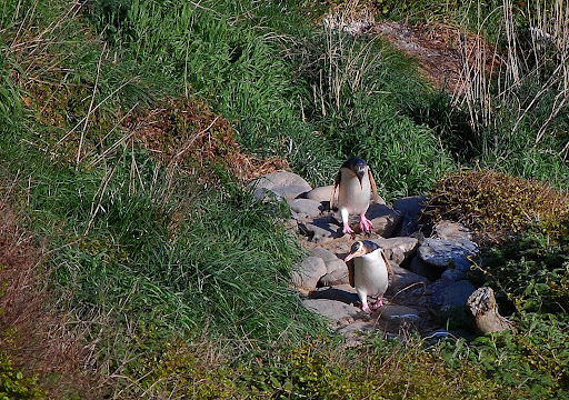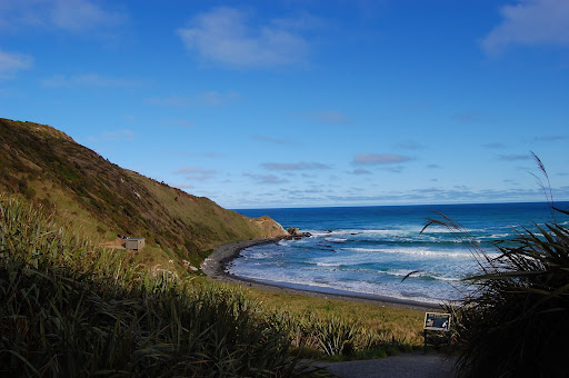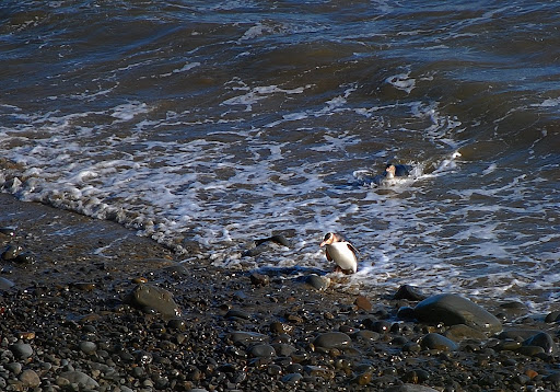 Roaring Bay, 就位在Nugget point的旁邊, 這裡之所以會是這個名字主要還是因為這片海岸跟大部分紐西蘭的海岸不一樣, 它總是波濤洶湧所以才會有這個兇悍的名字. 這裡是看黃眼企鵝的地方, 據說明是說只要在日落前兩小時開始等通常可以看到企鵝, 而我的確也很幸運的再等了不到20分鐘就看到了可愛的企鵝上岸.