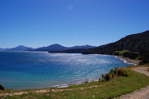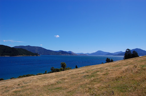 距離回家不到四十天, 目前人在Marlborough sounds的Clova bay裡換宿過著與世隔絕的生活. 這戶雇主ㄧ家五口三年前從威靈頓搬到這個天堂般的地方. 小孩都還在國小階段, 主人有三間cottage出租給客人當假日釣魚小屋用室內家具用品一應俱全, 表面上看起來就是靠這個維生. 但與她們生活幾天後我覺得他們根本不缺錢, 他們只是來享受一種與都市不同的生活方式. 每天早起餵雞餵豬, 然後澆花整理花園打掃cottage. 喝個早茶再做點雜事, 午餐過後開始準備小孩下課回家的點心等等的। 然後過起幸福的家庭生活।