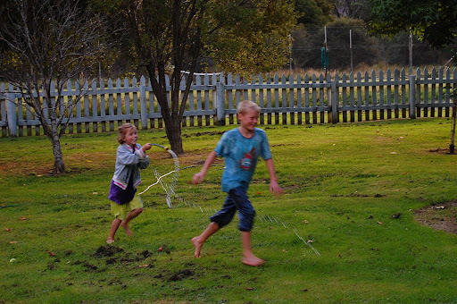 雖然前前後後做過六次換宿, 但是這次我才真的是經歷了kiwi的家庭生活. 因為有小孩的關係, 許多事情都圍繞在小孩上面打轉. 這戶主人是對好父母, 在他們的心中與行為上總是以小孩優先. 他們的小孩可以做任何事, ex:吃飯時跑來跑去, 抱著雞到處跑然後全身衣服弄髒, 甚至拿著水管互噴, 但就是不能玩Playstation (PS已經因為他們打太大被沒收). 這與台灣的生活思維差異極大, 每天一起吃晚餐時看著他們過著家庭生活, 我漸漸的想起了家, 雖然我家遠不如他家, 但總是自己的家. 就如同俗話說的金窩銀窩都比不上自己的狗窩一樣的貼切. 離鄉背景雖說不算太長, 但也不是太短, 越來越常在夜深人靜時想起了台灣的種種, 聽著江蕙的台語歌想著故鄉的一景一物. 然後一日更甚一日. 原來這就是想家的滋味, 在我剛離開台灣時從沒想到過會有這樣的感覺. 與其說是難受不如說是奇妙的感覺, 在紐西蘭的時間有限而我是如此的喜歡這個地方, 但心裡的另方面卻是不斷的觸及故鄉的事物. 我說我想回家卻又捨不得離開.......