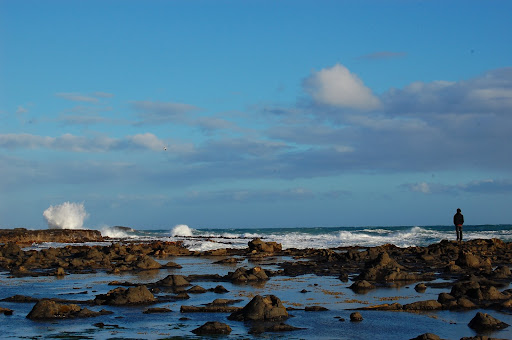 湛藍的海水讓Nugget Point的燈塔顯得特出,從高處的懸崖俯瞰這條蔚藍的海岸線與遠處的海天交界是一件很爽的事。